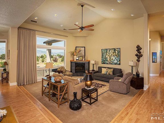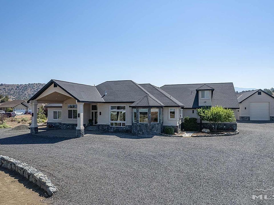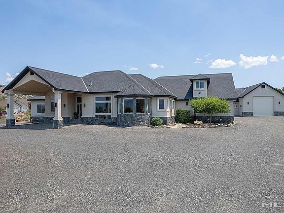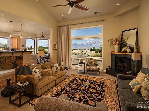 This is an absolutely stunning estate, set on 3.97 private acres backing to hundreds of miles of BLM land - offering access to the great outdoors and unlimited trails, perfect for horse lovers, dirt bike riders and the outdoorsman. Since it was built in 2006, this 4 bed/5.5 bath/3852 sq.ft home has been meticulously kept and is in pristine move-in condition. Entering through the grand foyer, you'll notice the high vaulted ceilings and floor to ceiling windows with breathtaking views of the Sierras.