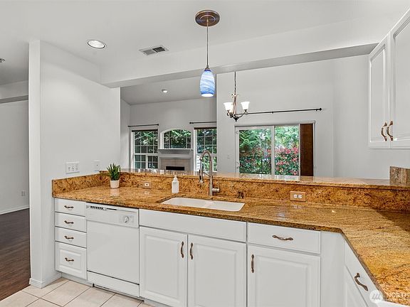New Home in the coveted Regency Ridge Townhomes! Flowing floor plan outlined with TONS of natural light, solid stone surfaces, LVP flooring, brand new carpet, and paint throughout. Private garage just steps from the front door - perfect size for your vehicle and other storage items. Back patio feels extremely private with lush greenery and no one looking down on you. This ground floor unit features one bed and bath on main, a spacious kitchen w/ eating space, gas fireplace, and vaulted ceilings. Upstairs is the master suite - vaulted ceilings, large windows, skylights, massive walk in closet, large bathroom vanity with seating space so you can relax and get ready at the same time. Strong HOA, Gated entry, no entry stairs - Welcome Home!