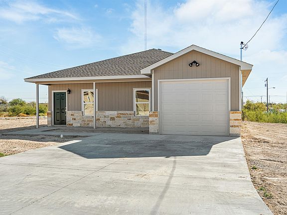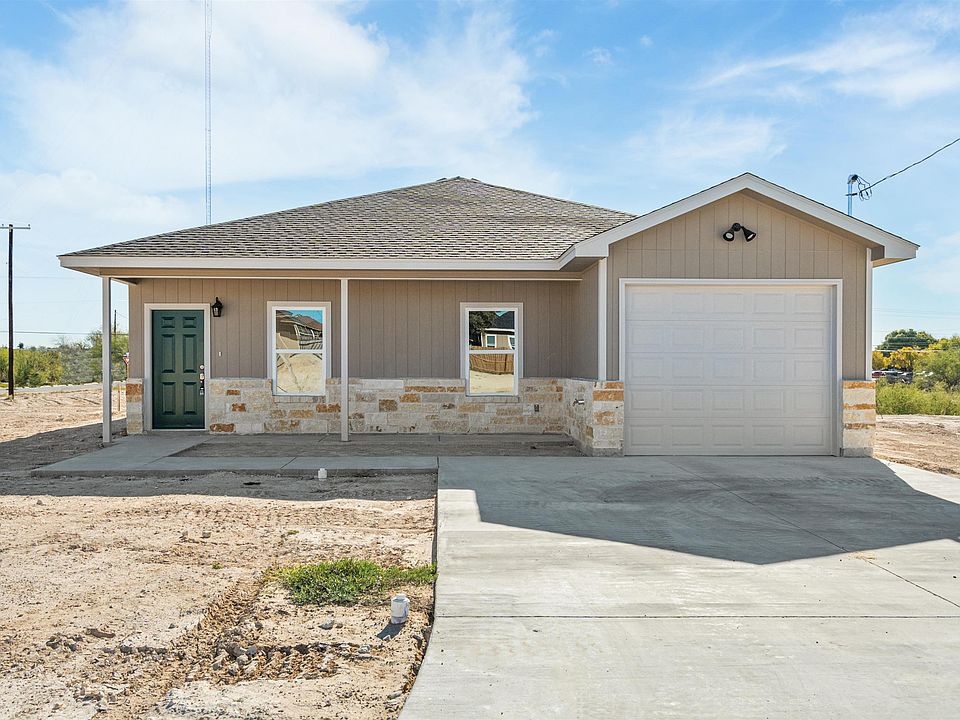 New construction home located in the desirable Tesoro Hills area of Del Rio, offering a thoughtfully designed 3-bedroom, 2-bath layout with modern finishes throughout. The home features wood-look ceramic tile flooring throughout, providing the warmth of hardwood with the durability and low maintenance of tile—ideal for everyday living. The open living, dining, and kitchen areas create a welcoming space filled with natural light. The kitchen is finished with quartz countertops, custom cabinetry, a large center island with sink, and contemporary fixtures, making it both functional and stylish for entertaining or daily use. The primary bedroom includes a private ensuite bath with dual vanities, modern finishes, and a walk-in tiled shower. Two additional bedrooms are well-proportioned and share a full secondary bath designed with coordinating finishes. Exterior features include a covered front porch, concrete driveway, and a 1-car garage. A privacy fence will be installed prior to closing. Conveniently located approximately 5 minutes / 5 miles from the West Gate of Laughlin Air Force Base, with easy access to shopping, dining, and major thoroughfares. A great opportunity to own a brand-new home with durable finishes and a clean, modern design in a growing Del Rio neighborhood.