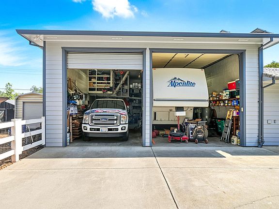 Car enthusiasts and hobbyists will appreciate the attached 2-car garage, a detached shop, and a separate RV garage, all featuring multiple 220V outlets. The RV garage is equipped with rooftop solar panels, and the garden includes two solar tracking panels to help offset energy costs.