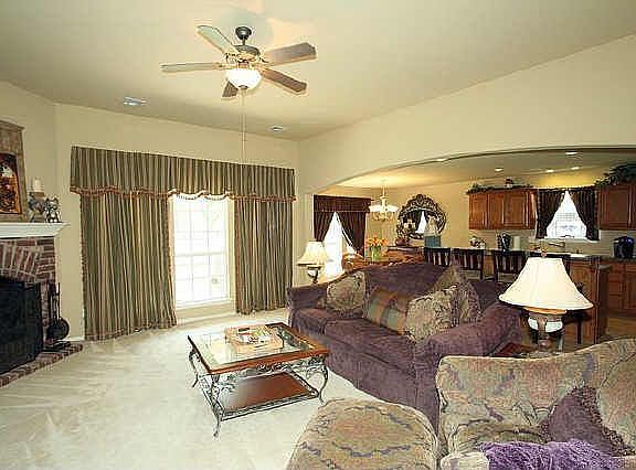 Split floor plan. sprinkler system; walking trails & pool just into Wag. Co.(lower taxes). Tiled backsplash & walk-in pantry in kitchen. Custom draperies stay in living/brkfst area & master bath which has garden tub & huge closet. Lots of crown molding.