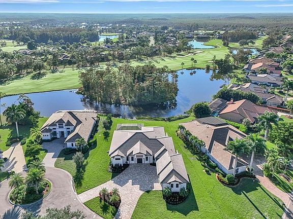 This unparalleled new construction home offers breathtaking southern views of both a pristine lake and an immaculate golf course, combining luxury living with natural beauty. Designed with exquisite craftsmanship and attention to detail, this home features soaring ceilings, expansive windows that flood the space with natural light, and an open-concept layout perfect for both relaxation and entertaining. The gourmet kitchen is a chef’s dream, boasting numerous appliances, custom cabinetry with hidden walk-in pantry and elegant quartz countertops throughout. The primary suite is a private retreat, complete with a spa-inspired ensuite shower and a spacious walk-in closet. Two other secondary suites are equally impressive in size with soaring ceilings, large walk-in closets and private bathrooms. This home features an oversized garage, thoughtfully designed to provide ample space for multiple vehicles, storage, and more. With extra-wide bays and extended depth, it easily accommodates larger vehicles or recreational equipment. Beyond parking, this versatile space is completely insulated and can serve as a workshop, home gym, or hobby room. Whether you're a car enthusiast, need additional storage, or want a flexible space for projects, this oversized garage offers unmatched convenience and possibilities. Outdoor living is elevated with two massive, covered patio living spaces, fully equipped outdoor kitchen, pool and spa, and seamless indoor-outdoor transitions, allowing you to fully immerse yourself in the stunning surroundings. Every inch of this home exudes sophistication and modern elegance, offering a rare opportunity to own a masterpiece in a premier location. At the heart of Wildcat Run is an Arnold Palmer Signature-designed golf course, renowned for its excellent conditions and challenging layout suitable for golfers of all skill levels. Complementing the golf experience is a 26,000-square-foot clubhouse that offers both formal and informal dining options, pro shops, and locker rooms. Wildcat Run's prime location in Estero provides residents with convenient access to nearby shopping, dining, and entertainment options, blending tranquility with modern conveniences.