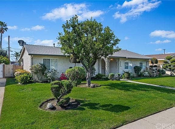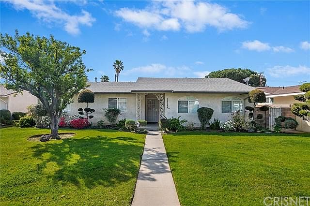 Absolutely Adorable Single Story Chatsworth Family Home With Over 2,000 Square Feet Of Open Living Space!! With no interior steps the floor-plan could work well for homeowners of all ages. You'll fall in love from first sight. The beautifully kept landscaping includes professionally manicured assortment of trees and large grass area. The remodeled kitchen features upgraded cabinetry, counters and appliances. In addition to the breakfast nook the home has a true separate for dining room with wainscoting. Entertainers will enjoy having a huge living room offering plenty of space for guests to spend their time. Cozy family with skylight and fireplace. There is an in-door laundry room with builtin linen closets and sink. For the convenience of guests there is a 3/4 bathroom with tile floors. The master suite features mirrored wardrobe doors in addition to the large walk-in closet. Double door entry to the private master bathroom has an oversized walk-in shower and separate soaking tub. Additional bedrooms benefit from a full hall bath with shower & tub. Interior highlights include ceiling fans, recessed lighting, upgraded windows, smooth ceilings and wood shutter window treatments. The very low maintenance rear yard features a covered patio, cute breezeway with hand laid pavers, wrought iron gated RV parking, block walls, two car garage, composition shingle roof and rain gutters.