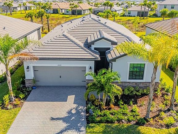 Discover this beautiful 4-bedroom, 3-bath home in Verdana Village, one of Southwest Florida’s most sought-after communities. Spanning nearly 2,100 sq. ft. of interior space plus an additional 1,000 sq. ft. of outdoor living, this home perfectly blends modern design, comfort, and resort-style living. Enjoy an open floor plan filled with natural light, ideal for entertaining or relaxing. The kitchen features quartz countertops, stainless steel appliances, gas stove, sleek cabinetry, and a perfectly sized island with bar seating and over sized pantry. The spacious primary suite offers a large walk-in closet and a luxurious en-suite bath with dual sinks and a walk-in shower. Step outside to your screened lanai and take a dip in the saltwater pool with multicolor LED lighting, surrounded by privacy hedges for your own private oasis. Upgraded feature no-seem lanai screen to keep all the bugs at bay. Additional features include impact windows and doors, tile flooring throughout, Belgard decorative pavers, insulated garage with overhead storage, tankless gas water heater, and screened front entry. Situated on the main residential street, you’ll enjoy quick, easy access in and out of the community. Residents of Verdana Village experience unmatched amenities, a clubhouse, resort pool and spa, 24-hour fitness center, indoor sports courts, tennis, pickleball, basketball, bocce courts, dog park, and playground. This home also includes exclusive access to the West Amenity Center, featuring a lap pool, spa, fitness center, and clubhouse for an elevated, private experience. The HOA covers lawn care, irrigation, and mulching, allowing for true low-maintenance living. Conveniently located near shopping, dining, top-rated schools, and Gulf beaches, this home offers the best of modern, vibrant, and move-in-ready Estero living.