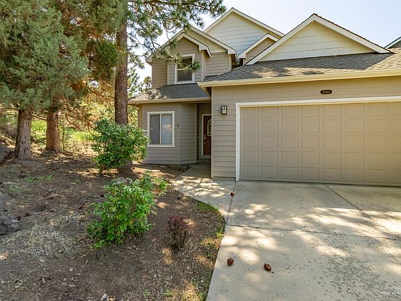 Nestled in the trees, this charming home sits on a private lot just a short distance from Sawyer Park and the Deschutes River. Main level living with laundry room, powder room, great room w/vaulted ceiling & ceiling fan, gas fireplace w/slate surround. Bright & sunny kitchen w/ceramic tile counters, gas stove, pantry, dishwasher, refrigerator & breakfast bar w/lovely views of the natural landscaping. Dining area has wood flooring, master suite w/vaulted ceiling, walk in closet, dual vanity, tiled countertop & flooring, soaking tub and stall shower. Upstairs offers two bedrooms, one w/desk nook and walk in closet, Jack & Jill bathroom with tub/shower. Private backyard features a spacious wood deck and pergola. Two car attached garage, 50 gallon gas water heater and sprinkler system. Great location, for long walks or just relaxing by the river, minutes to downtown Bend. Park like setting, with low maintenance.The home has an attached garage wall with garage next door and zero lot line.