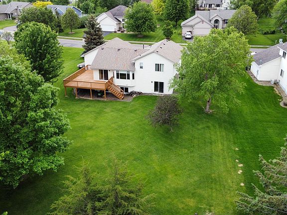 Original owner, well cared for home with MANY updates, new roof (2023), new concrete driveway (2024), new flooring throughout (carpet, LVP), painted interior throughout, large/deep lot (.5 acre) with fire pit, HUGE wrap around deck (recently stained & sealed) overlooking backyard, back of home is west facing for AMAZING sunsets, deck footings poured to support future 4 season porch, mature trees in backyard for added privacy, new interior lighting, new microwave, maintenance free siding, NEW concrete driveway, nicely landscaped, new smoke detectors. Large (27x24) unfinished lower level awaits future space for 5th bedroom and 4 bathroom, media/recreation room. New garage service door, Desirable school district, close to walking trails, parks, biking & shopping, minutes for I-94 & 169 great for commuting. Pride in ownership!