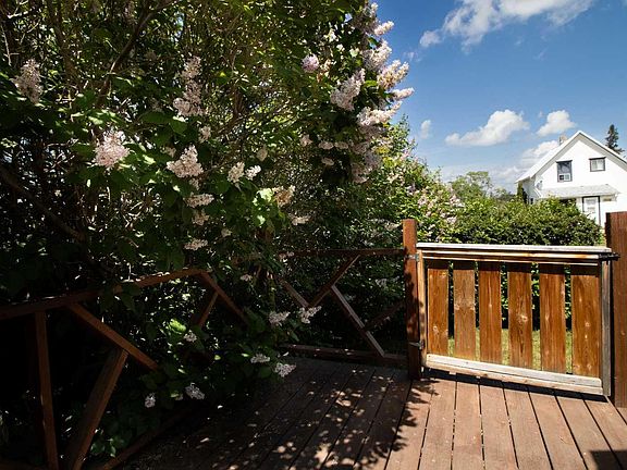 This charming 1946 bungalow blends timeless character with modern updates—all set on a spacious 6,000 sq ft lot in the heart of Bowden. Framed by mature hedges for privacy, the home welcomes you with a west-facing front deck and a generous entry foyer. Just beyond, the open-concept dining area flows seamlessly into both the updated kitchen and cozy living room. Rustic wood beams and a wood-burning stove with a beautiful stone mosaic surround create a warm, inviting atmosphere.