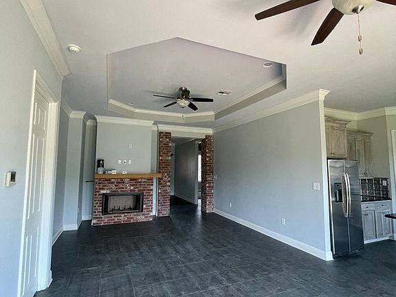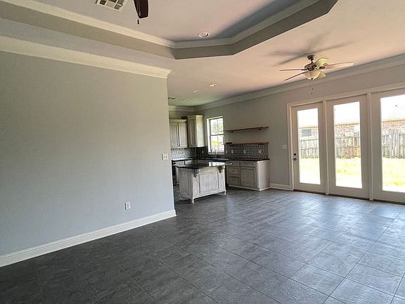 This rental home offers a welcoming layout with modern finishes throughout. The spacious kitchen comes with plenty of cabinets, sleek counters, and a center island, making it both functional and inviting. The open living area flows seamlessly, while tray ceilings and ceiling fans add an extra touch of comfort.