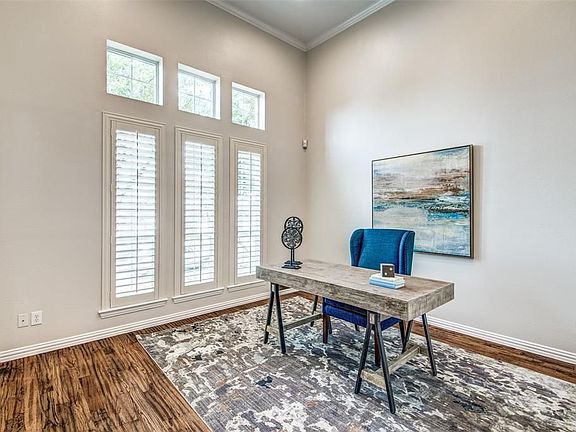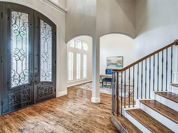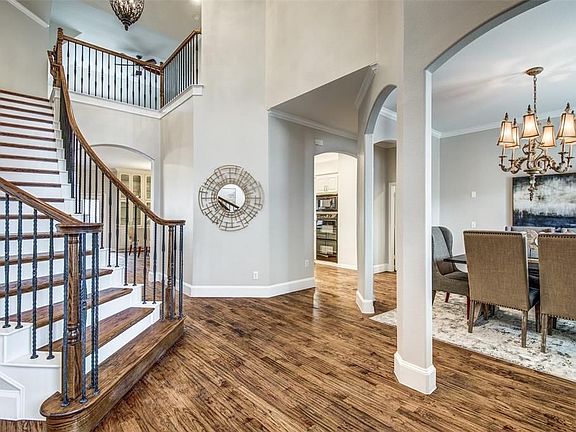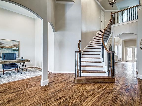 Exquisite, Sotherby designed dream home in West Allen is truly elegant and move in ready. Beautiful updates are found in every room with the most recent being hardwood floors in additional rooms and staircase, the entire home was painted and a flagstone entrance walkway and back patio were added. The elevation commands attention with a gorgeous brick and stone facade, stairs lead up to the custom double wrought iron front doors with glass panels that open. The interior offers sweeping views of the winding staircase and highly sought after floor plan. An Office that could also be used as a Formal Living is off the entry way and is a great space to work from home or entertain company and friends. Flanked on the other side of the vaulted entry is a Formal Dining Area with plantation shutters, hardwood flooring and a grand chandelier. The Master Suite is generously sized with vaulted ceilings, plantation shutters and hardwood flooring. The attached Master Bathroom is outstanding with a jetted tub, separate shower, custom walk in closet, dual sinks and exotic quartz countertops, truly stunning. The Chef's Kitchen makes prepping and cooking meals a joy with gorgeous granite countertops, farmhouse sink, ivory cabinetry, built in fridge, large island, four burner gas cooktop plus dual ovens and chandelier. The Kitchen is the heart of the home and is open to the large Breakfast Nook with custom built-ins and the welcoming Family Room. Enjoy entertaining in the Family Room that is anchored by a floor to ceiling stone fireplace and has a wall of windows that allows natural light inside and overlooks the fabulous backyard. A second bedroom with hardwood floors is tucked off the Family Room with a full bath just outside of the bedroom. The Utility Room was remodeled to include custom cabinetry, room for your fridge and it even has a closet for additional storage. The backyard is surrounded by a privacy fence and a pergola patio that is great for al fresco dining. A rear automatic gate opens to allow you access from the alley to your rear three car garage. The upstairs offers a whole separate living space with a huge Game Room that leads to the massive pre-wired Media Room. It's easy to imagine the Game Room as either an adult space with pool or foosball table and bistro seating or a kids Play Room with toys and play table. The Media Room could also serve double duty as either a dedicated Media Room or split with half Media and half Game/Toy Room - the options are endless! Three additional Bedrooms are on the second floor with two of them have attached private baths. Conveniently located near 121, Dallas North Tollway and 75 for commuting. Neighborhood amenities include; pool with separate baby pool and two covered seating areas plus grill-serving bar and playground backing to tree lined creek, greenbelt and trails that wind through Twin Creek's golf course. Neighborhood is also close to award winning Evans Elementary. This home has a great location, is in immaculate condition and is turnkey ready!