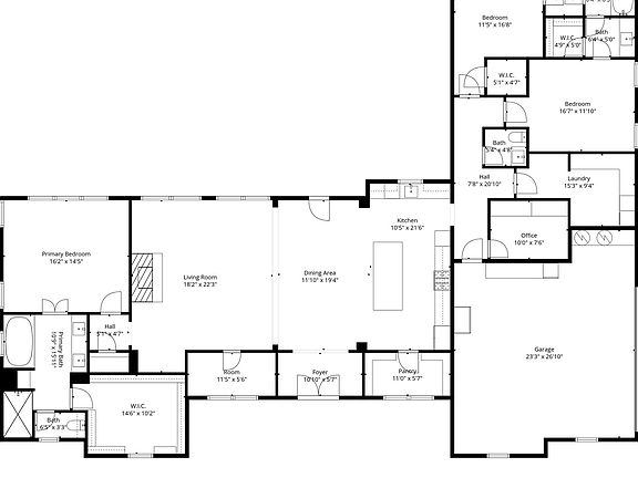 Farmhouse sinkTwo flex roomsDouble ovensEpic laundry roomOpen-concept layout