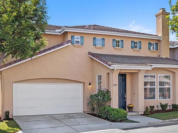 Discover the charming, gated community of Heritage-Legends, nestled within the beautifully master planned community of Shadowridge in Vista, CA. This residence boasts the largest floor plan available in the Heritage development, offering just over 1,700 square feet of spacious and comfortable living. Upon entering the home, you are greeted by an open floor plan of the formal living and dining rooms. These spaces feature a cozy fireplace and vaulted ceilings, creating an inviting atmosphere ideal for entertaining or relaxing with family and friends. Continue into the family room and kitchen area to find a newly renovated kitchen equipped with elegant cherry cabinets, quartz countertops, stainless steel appliances, and a walk-in pantry. Adjacent to the family room and dining nook, a charming patio offers the perfect setting for gardening, enjoying time with pets, or savoring your morning coffee. On the upper level, a spacious loft overlooks the downstairs living area. This versatile space is perfectly suited for use as an office, game room, or as an optional fourth bedroom to fit your needs. The primary bedroom, located at the top of the landing and accessible through double doors, features an ensuite bath with double vanities and a walk-in closet for ample storage. Two additional bedrooms and a conveniently located bathroom complete the upstairs layout. The property includes a two-car garage and a driveway, providing secure and convenient parking options for residents and guests. Shadowridge, Vista is a vibrant community of North County San Diego - situated adjacent to Carlsbad and Oceanside - just a few miles inland from the scenic California coast. It’s home to the Shadowridge Golf Club, Buena Vista Baseball Fields, and Buena Vista Community Park which features a tranquil duck pond and three miles of picturesque walking trails. Experience all the wonderful amenities and natural beauty that the Shadowridge community has to offer.