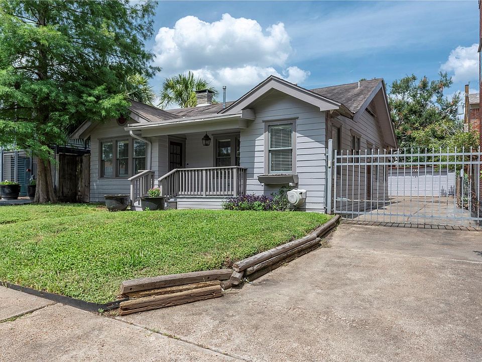 Charming Hyde Park bungalow with one of the largest lots in the area. The home offers a cozy living room with wood-like tile flooring. Spacious dining room is adjacent to the kitchen. This space has been used as a home office. The kitchen has a gas range, and a quaint breakfast room. Two bedrooms share a full bathroom. The utility room is in the home. Behind the gated drive is the detached two-car garage and an oversized covered back patio area. This large lot has plenty of room for a pool. Just steps from River Oaks Shopping Center with amazing restaurants, entertainment and shopping. Enjoy exploring miles of trails on Buffalo Bayou. Easy access to most major freeways, minutes from Downtown and the Medical Center.