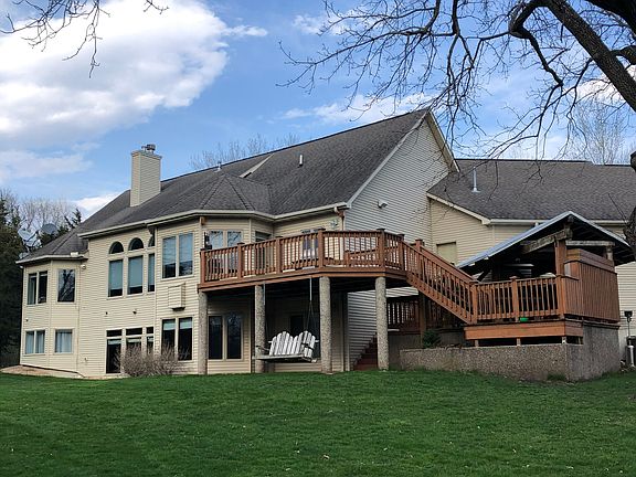 This beautiful home, situated on just over 3 acres of land, is a must see! Located in the beautiful Country Estates Subdivision, the backyard's park like setting offers country living privacy, wildlife watching galore, and a great outdoor living space. Relax outside after a long day, as this home comes complete with outdoor bar and tv hook up for watching your favorite team. Inside, the open, airy floor plan is perfect for entertaining. The main level includes a large gourmet kitchen new in late 2018, high-end KitchenAid refrigerator, formal dining room with tray ceiling, great room with tall ceilings and fireplace, large den/office, and master suite. The lower level features beautiful knotty pine, a family room with additional fireplace, 3 bedrooms, a recreation room for billiard sports, and full walkout to the beautiful backyard. This home has it all with a three car garage, and another 3 stalls below for access to the backyard and heated for a workshop for the hand one!