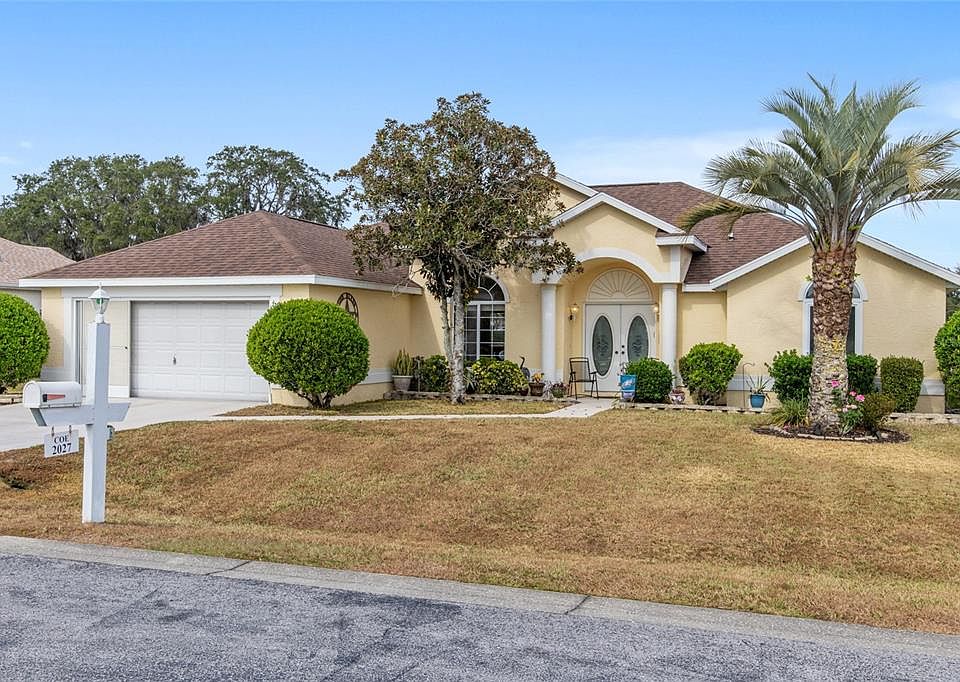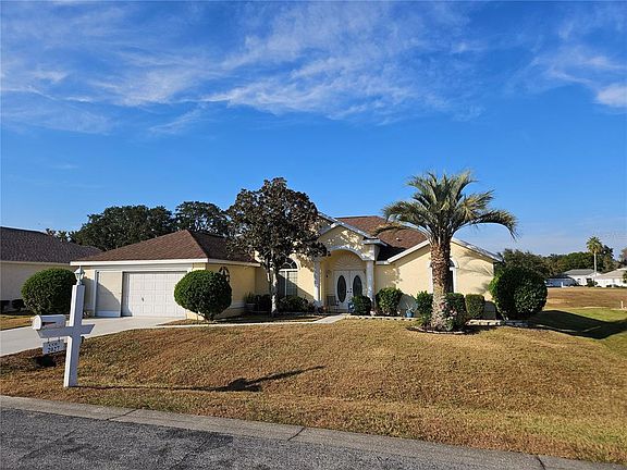 One of a kind golf course lot and view overlooking the 1st tee in the highly desirable gated community of Ocala Palms! As you enter the house you will see new ceramic tile in the foyer, living room and dining room areas. The view from here looks into an expansive lanai with a summer kitchen complete with a Jenn-Air electric grill. The kitchen includes updated granite countertops and an oversize granite island that seats 4. Flooring is luxury vinyl planking that also goes into the laundry room, where you will find a new LG washer. The master bedroom has a tray ceiling and a large walk in closet. The must see uniquely updated bathroom includes a custom walk-in shower and window that slides open. The 2 car garage includes a built-in workbench. The 2025 HVAC also has UV lighting and surge protection. New roof in 2021. New water heater in 2024. 6 new windows in 2024. Updated granite countertop in 2nd bathroom. All this on a completely landscaped property within walking distance to all the amenities of Ocala Palms.