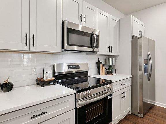 - Exterior features: 3 Designer Interior Finish Packages, 9' Ceilings Downstairs, Dedicated Landscaping Services, Double-Bowl Vanities, Efficient Appliances, Fenced in Back Yards, Flooring: Wood, Large Kitchen Island w/ Breakfast Bar, Maintenance-Free Living, On-Site Maintenance, On-Site Management, Package Receiving, Pet Friendly, Planned Resident Events and Activities, Quartz Countertops, Shaker Style Cabinetry, Single Basin Stainless-Steel Undermount Sink, Smart Home Technology, Smooth Ceilings Throughout, Soft-Close Cabinetry, Subway Tile Kitchen Backsplash, Walk-in Surround Showers with Glass Door