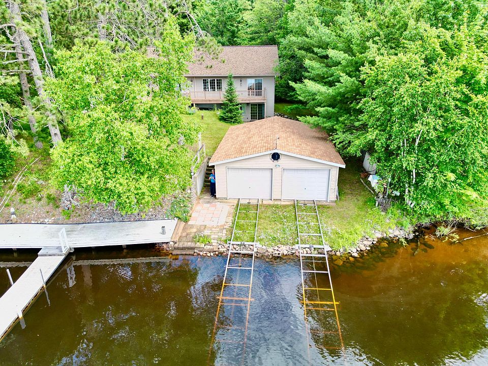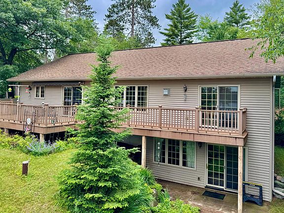 Tremendous location on 2,433-acre Lake Nokomis! This move-in ready, south-facing home features an open-concept layout with composite wood flooring in the living and dining areas. The kitchen offers oak cabinetry, appliances, and engineered tile flooring leading to a half bath, laundry, and garage entry. Enjoy energy-efficient 4-zone in-floor hydronic heat, LG A/C, and a gas fireplace. There is a primary bedroom/bath with walk-in closet and laundry on the main floor. Entertain on the lakeside composite deck with Sunsetter awning. The walkout lower level includes a second kitchen with tongue & groove pine, family room, bonus room, and private access. Sandy swimming frontage, in-ground irrigation system, 24x32 dry boathouse with double rail system complete the package.