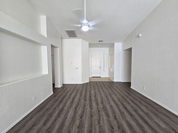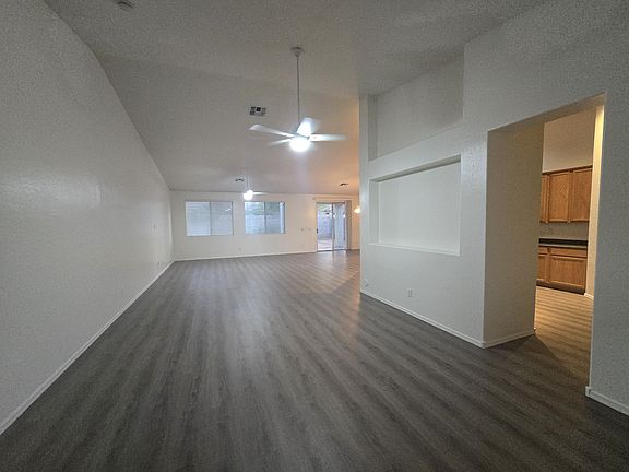 Newly renovated (10/2024): fresh interior painting, newly installed vinyl plank flooring through out the house (no carpet), new ceiling fans in all the rooms, new blinds for most windows, new dishwasher and kitchen faucet. Single level house with four bedrooms with vaulted ceiling and large great room. Open kitchen with island. Refrigerator provided. Split 3 car garages. Good size backyard with patio. Nothing added on top of rent (no rental tax, no admin fee). No eviction history, no felony history, gross verifiable monthly income above $7000 per household. OK with up to 2 dogs/cats with $30 monthly pet rent per pet. Fully refundable security deposit equaling one month rent, fully refundable $500 cleaning deposit.