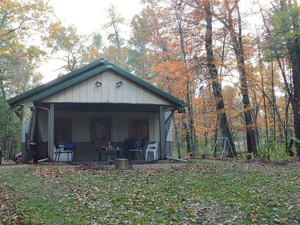 Your perfect private getaway awaits! Paint Creek wraps around this property to offer waterfront views from multiple angles and access points. A river-walk has been recently cleared to enjoy the serenity and abundant wildlife this property offers. Enjoy campfires in the newly cleared yard space or head toward the river for a perfect spot to start or end your kayaking trip with a sandy access point. Only minutes by car or kayak from Lake Wissota Lodge, The Marina, and Pickleball courts. The home offers year round comfort with a newly renovated bathroom and an oversized, recently insulated garage with loft storage space. Garage could be converted to more living space as well! RV hook ups on the second lot allow for friends and family to visit your oasis! Property has recently been removed from flood zone.