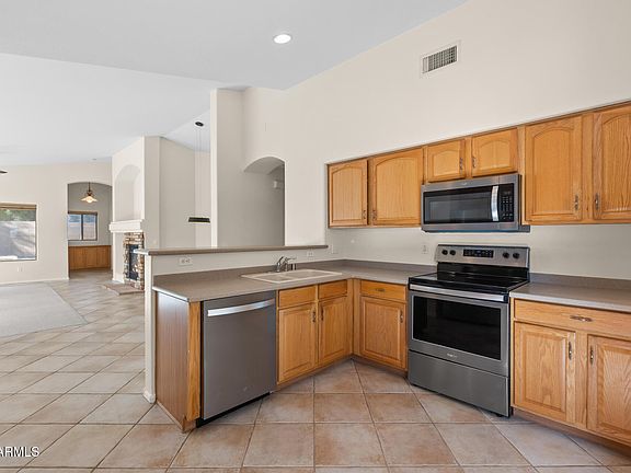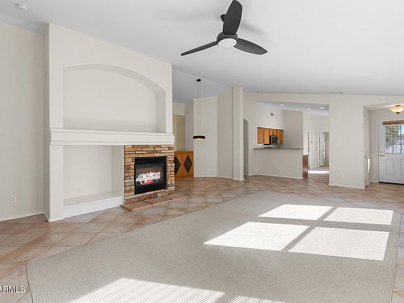 Freshly updated Pool home in a serene lake community—ready to move in! This beautifully maintained 3-bedroom, 2-bath home offers fresh interior paint, deep-cleaned carpets, and a professional move-out clean—ready for immediate move-in! Located in a desirable adult lake community close to shopping and amenities, this home combines comfort and convenience. The kitchen features Corian countertops, a pantry, and includes the refrigerator, washer, and dryer. The spacious primary suite offers a large walk-in closet and a bath with dual sinks, separate shower, and relaxing garden tub. Additional highlights include vaulted ceilings, 18'' neutral tile, and professionally landscaped front and back yards. Enjoy Arizona living at its best with a sparkling play pool featuring an in-floor cleaning system. The insulated 2-car garage includes built-in cabinets for extra storage. A wonderful home in a peaceful community; ready for you to enjoy!