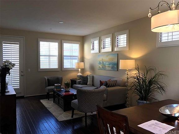 One of a Kind Highly Upgraded "Cortile" 2 Bedroom 2.5 Bath Luxurious Porter Ranch Town Home. Spacious floor plan featuring a dramatic formal entry leading to a designer furnished living room, dining room with high end wood floors, plantation shutters. A spacious gourmet upgraded kitchen features a tile floor, custom wood cabinets with granite counter tops and stainless steel appliances. The second story features 2 bedrooms including the master suite with dressing area and own bath and a second bedroom with bath. The home also features an attached two car garage as well as two patios. The gate guarded community also includes a recreation area including a pool, spa and bbq area. All this resort style living at its best and only minutes from schools and shopping.