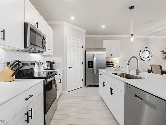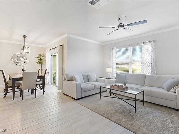 WOW. Affordable golf course living at its' best with no membership required!!! Must see this stunning 4 bedroom, 2 bath home in the highly desirable community of Magnolia Landing where coastal charm meets modern comfort. Backing onto the 10th hole tee box, this home sparkles with over $25,000 in upgrades and truly shows like a model home. Inside you will find a bright open layout featuring crown molding, upgraded fixtures, plank tile, and luxury vinyl flooring. The gourmet kitchen shines with granite countertops, tile backsplash, stainless steel appliances, under-cabinet lighting, and plenty of storage. A stained-glass front door allows for ample lighting in the home, while the finished garage floor and the "smart home" blend convenience with style. The spacious bedrooms and spa-like bathrooms complete the interior, while the outdoor living is all about enjoying those sunny Florida views as you enjoy your favorite beverage from your lanai. Magnolia Landing offers a lifestyle that feels like you're on vacation every day. Enjoy access to 2 sparkling pools, a fitness center, 8 pickleball courts, bocce, shuffleboard or gather with neighbors at one of the many social events. Don't feel like cooking? Head over to the golf course clubhouse for dinner, drinks, and socializing. Beyond the security guarded gate, you’ll love the easy access to I-75, shopping, schools, restaurants, and many parks. Downtown Fort Myers is just minutes away with vibrant dining, entertainment, and waterfront charm. With two airports within 30 minutes from your home, travel to your next adventure is a breeze. The Florida’s resort lifestyle is right at your doorstep with this move-in ready home so schedule your showing today to enjoy all the fun!