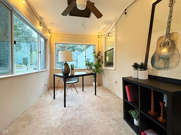 Charming Cape Cod Style home, just one block from Broad Ripple Park's tennis courts, trails, dog park, pool, and new community center. Walk or bike to restaurants, coffee shops, and the Monon Trail - the best of active, outdoor living right at your doorstep! Enter through a sunny, glass-enclosed front porch, into an open LR/DR with gorgeous refinished hardwood floors and a kitchen with mid-century touches. The hall leads to 2 light-filled bedrooms, and an updated full bath. Upstairs, a larger bedroom with private half bath and the fourth bedroom/office. The basement has a bonus room with closet, family room, large utility room and separate laundry area. Outside, enjoy a private backyard oasis with large covered deck w/ TV hookup, lined astroturf yard and firepit, perfect for game day. Located on a quiet, tree-lined street in Washington Township Schools, this home blends Broad Ripple lifestyle and outdoor living. All appliances, including washer and dryer, included!