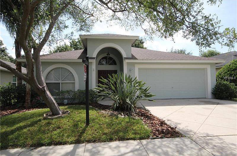 POOL Community NO CDD! Move in Ready Priced Under Market Value-Realtor Owned! Architectural Roof 2004! AC Replaced 2010! 4 Bdrms 1811 Sq Ft. Upgraded Granite in Kitchen & Both Baths - Teak Wood Laminate Flooring, New Paint Exterior & Interior! You'll love the Granite Trimmed Tile Rug in Foyer w/Double Door Grand Entry! 2 Way Split Bedrooms, 2 Bedrooms & Guest Bath up Front, 3rd Bedroom & Master Suite in back. Great Room w/Vaulted Ceilings & Teak Wood Laminate Flooring w/Sliders out to Covered Patio! Formal Dining Room w/Bay Window is Elegant! Kitchen w/Slide out Shelves in Cabinets, Granite Counters, Deep Sink & New Faucet! Eat In Space in Kitchen will accommodate large table! Master Suite has Vaulted Ceilings, Slider out to Covered Patio, Double entry into Grand Master Bath with HUGE Garden Tub w/Glass Enclosure & Shower! Dual Sinks w/Granite Counters! Large Walk in Closet! Ceiling Fans throughout, Carpet in 3 Secondary Bedrooms only! Covered Patio feels very Private w/Fence in rear & left side, just needs the right side. Garage has built in work bench & Shelves! Driveway is wider w/wonderful concrete design. Sterling Ranch is one of the few communities that have a Pool, Just up the street from this house, with NO CDD and LOW HOA!