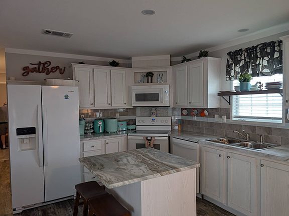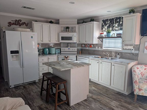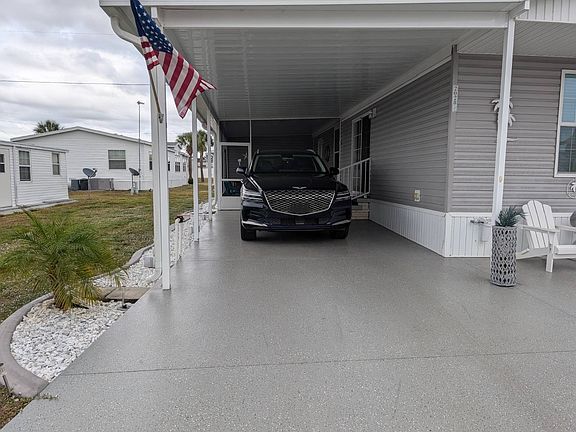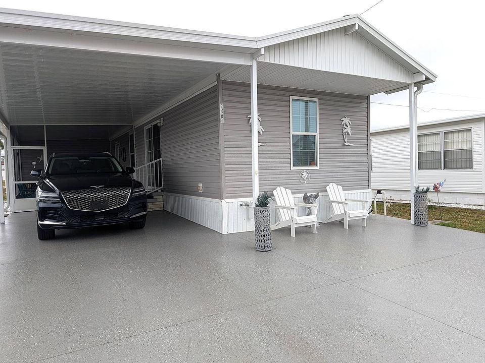 Welcome to this bright and spacious 2 bedroom, 2 bathroom 2019 model home offering 784 sq. ft. of comfortable living space. One bathroom features a full tub/shower combo. This well-maintained, smoke-free, pet-free home boasts double-pane windows, an open-concept floor plan, and the convenience of an inside laundry room. Painted Driveway. New Roof 2024. New AC in 2021. Outside, enjoy a beautifully cared-for lawn with irrigation, plus a large 13' x 9.5' storage building complete with workspace. The speckled, sealed driveway offers easy maintenance and can accommodate up to three vehicles. A generous screened-in patio provides the perfect spot for relaxing or entertaining. Located in a quiet, family-owned 55+ community, this park offers wonderful amenities including a clubhouse, fitness center, billiards, heated pool, and more. Just minutes from everything you need! No pets allowed. Priced to sell-this is a must-see! Schedule your appointment today!