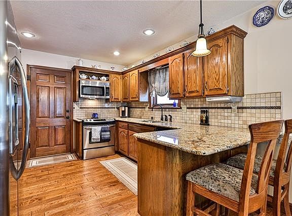 Multiple offers received. Deadline is Sunday, 8-28 at 5pm. This well-maintained ranch home is awaiting its new owners. The home boasts gleaming hardwood floors on the main level. The oversized living room has a vaulted ceiling and a gas-start fireplace. The kitchen has been updated with granite countertops and all appliances stay. The nice master bedroom has wheelchair access. The master bathroom has wheelchair access and a zero-entry shower. The bathrooms have been updated. The exterior has not been overlooked. Hardy board siding is installed. Pella thermal windows with shades inside are also a nice feature. The walk-out basement has a rec room, wet bar, and a third full bath. Two other rooms, an office, and den could also be non-conforming bedrooms for a large family! The fenced backyard overlooks some trees and on the other side is the walking trail from Mckee Park. There is a wheelchair ramp in the garage that can easily be removed. The seller is selling as is. Don't miss out.