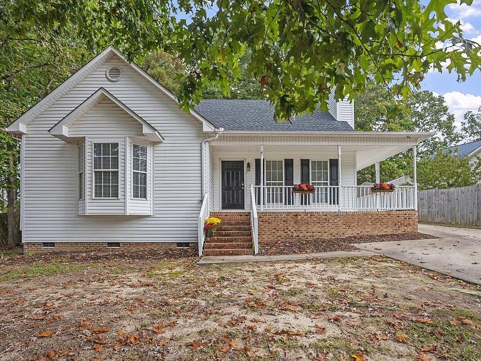 Tucked away in a desirable Raleigh location just minutes from shopping, dining, I-540, and Wake Forest, this spacious 5-bedroom, 3-bath home offers the perfect blend of charm, comfort, and convenience with No City Taxes and No HOA! You'll love the wrap-around front porch, perfect for enjoying your favorite beverage. Inside, the main level welcomes you with sun-filled living spaces, including a spacious Family Room featuring a gas log fireplace. The Kitchen boasts beautiful cabinetry, Granite counters, tiled floors, SS appliances, and a functional layout that makes meal prep a breeze. The dining area, with its large windows and direct access to the back deck, is perfect for both everyday meals and entertaining. The first-floor Primary Suite features a gorgeous bay window, walk-in closet, and an en-suite bath complete with tile floors, double vanity, and a shower/tub combo. Two additional bedrooms on the main level share a full hall bath, and a convenient laundry area rounds out the floor. You'll appreciate the abundance of storage space found throughout the home. Upstairs, the previously unfinished attic has been finished (unpermitted) to include two versatile rooms and a full bath. Whether you're wanting extra bedrooms, hobby space, an Office, or a playroom/teen lounge room, this area checks all the boxes. Step outside to enjoy the peaceful wooded views from your back deck. 1% Incentive towards Buyer's Closing Costs up to $5K with the use of Preferred Lender-Nick Overcash with FCMA and Preferred Closing Attorney-McCall Law Firm.