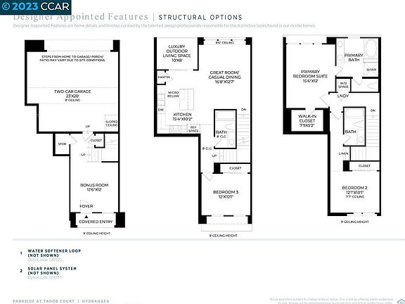 Ready Fall 2023! This corner 3-story, attached townhome, features 1769 sf of 3 bedrooms with 3 full baths, a bonus room at 1st floor. 2nd floor have 1 bedroom and a full bathroom with easy access of the living area. 9’ high ceilings Covered balcony allows for continued indoor-to-outdoor living space. Located exclusively at Parkside at Tarob Court, a new community currently under construction. This home features a private 2-car side-by-side garage with direct access to the home, tankless water heater. Parkside at Tarob Court is located near the new Milpitas Transit Center featuring BART / VTA and convenient access to highways 680 / 880 / 237. Walking distance to future city park! Designer upgrades can still be selected. Customize this home today!