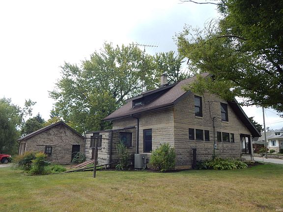 Rare find! Unique stone home, 1 story with full unfinished basement plumbed for additional bath. Brick fireplace. Featuring hardwood floors among the numerous old charm amenities. 1718 Sq Ft of finished living space. Large master bedroom once was 2 bedrooms & could easily be converted back to a 3 bedroom home. 2 car detached garage. Recent basement waterproofing system installed with warranty. Possible extra building lot included (value approximately $25,000+)