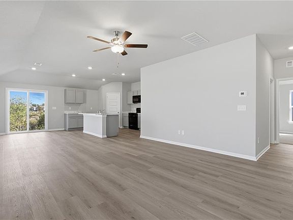 Welcome to the Bridgeport Plan, a beautifully designed 4-bedroom, 2-bath home offering comfortable living with an open-concept layout. The main living area features a seamless flow between the living room, dining room, and kitchen, where an inviting island provides additional seating and prep space—perfect for everyday living and entertaining.