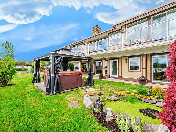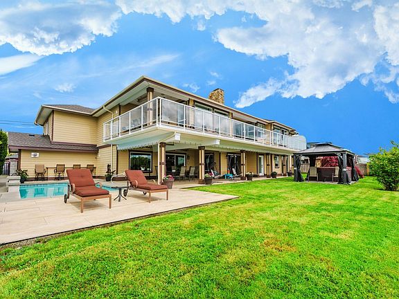 RARE FIND! INCREDIBLE WATERFRONT ESTATE on GORGEOUS 11,282 SF property with 100 feet of Fraser River waterfront & BREATHTAKING PANORAMIC MOUNTAIN & RIVER VIEWS from all main rooms in the open-concept living space that flows out to a private south exposed Resort Style Oasis with Pool, Hot Tub & Huge Heated Patios! Newer steel pilings ready for your boat dock. STUNNING CUSTOM 5633 sf open plan rancher with walkout bsmt is a perfect blend of comfort & elegance. Main floor - 2 spacious bedrms - spectacular primary with walk-in closet, sliders to patio & double fireplace to luxurious ensuite with soaker tub, dual vanities & oversized shower. Elevator descends to bright bsmt/entertainer’s dream with 2nd kitchen/bar, wine cellar, games rm, 2 bedrms & gym/3rd bedrm. Triple garage. Incredible Find!