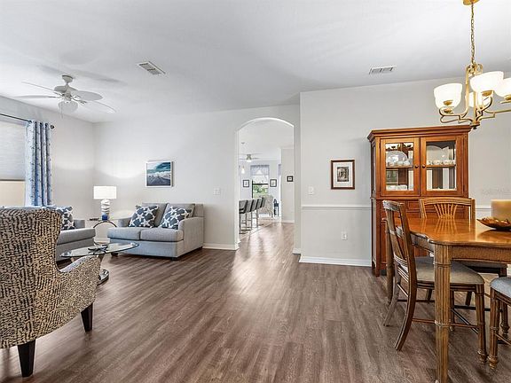 Enjoy lake views and resort-style living in Venetian Falls, Venice’s premier 55+ gated community—just minutes from Gulf beaches, shopping, dining, and the charming historic district! This spacious 3-bedroom Milan model offers a thoughtfully designed open floor plan with separate living, dining, and family rooms, blending elegance with everyday comfort. Enter through the screened front entry into a welcoming foyer featuring a leaded-glass front door with sidelight and transom window. The home showcases floating luxury vinyl flooring in the main living areas. The kitchen features one-level quartz countertops, a stylish mosaic backsplash, solid-wood cabinets with trim, dimmable under-cabinet lighting, stainless-steel appliances including a range with convection and air fryer, and a walk-in pantry. The adjacent bay-shaped sitting room with three windows, captures peaceful lake views. Enjoy outdoor living on the spacious lanai, perfect for dining, grilling, or lounging. For peace of mind, the home includes accordion storm shutters, remote-controlled roll-down storm screens, whole-house water filtration and softener system, and surge protection. The two-car garage features a durable epoxy floor, utility sink, and an extra refrigerator. Wonderful curb appeal! Pavers enhance the driveway, walkway, and lanai. Venetian Falls offers resort-style amenities including a clubhouse with heated lap pool and spa, resistance-walking pool, fitness center, billiard room, bocce courts, full-time activities director, on-site management, and so much more! Lawn care, irrigation, basic cable, and internet are all covered by the reasonable HOA fee. Don’t miss this beautifully maintained home with lake views and luxury upgrades in one of Venice’s most desirable communities!