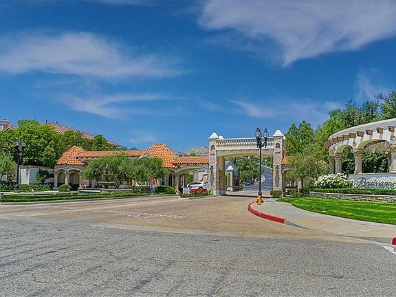 Exquisite home! Model perfect inside & out! Designer touches throughout, including custom cpts & flooring, unique crown moldings, 4.5 inch plantation shutters, ultra kitchen cabinets w/granite countertops, bathrooms w/custom marble/tiles, many built-ins including entertainment ctr, upgraded ceiling canned lighting + wall artwork lighting, granite-finish garage flr, & much more! 3-zone AC! Wonderful flr plan w/2 family rms, 1 down & 1 up, plus downstairs MBR suite w/access to backyd! Backyard has professionally designed hardscape & landscape including 3 patio areas (1 cov'd), a 7'x10' in-ground spa w/waterfall & seating all around both in-water & out, stone & tile fireplace w/raised hearth, built-in BBQ w/tile countertops and blt-in refrigerator, garden area on E. side of house w/fountain & visible from the FD wdw, custom outdoor lighting, & more! Truly a showplace! Home is in Prestigious Guard Gated Renaissance Community and walking distance to Porter Ranch Community School.
