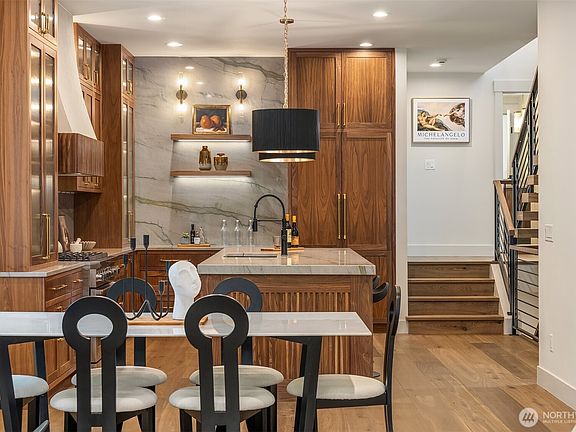 Experience unparalleled luxury in the heart of Madison Park. An exceptional new construction residence where timeless design meets modern sophistication. Dramatic entry with soaring ceilings open to expansive light-filled living spaces. Walls of glass invite seamless indoor-outdoor living, extending to a covered terrace with fireplace for year-round enjoyment. Chef’s kitchen meticulously appointed with bespoke cabinetry, stone slab backsplash that climbs to the ceiling + a butler’s pantry. Ascend the custom steel floating staircase to find 3 ensuite bedrooms including a primary suite with a spa-like bath. 3 levels of living with multiple terraces, 2-car garage w/ mudroom entry. Just one block from Lake Washington, cafes, and boutique shops.