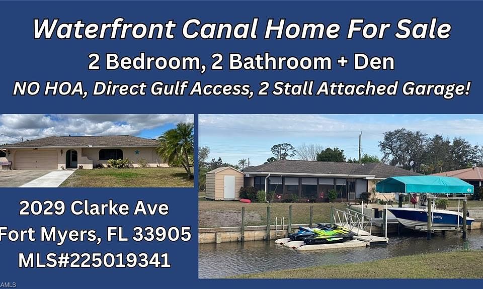 Canal waterfront with direct Gulf access! Move-in ready! This could be your perfect house at the perfect price. Free yourself from HOA fees! Discover the perfect blend of comfort and low-maintenance upkeep in this lovely 2-bedroom, 2-bath home with a den and a 2-car garage, located in sunny southwest Florida! Enjoy breathtaking water views from every room in the home! Experience the peace of an undemanding, tasteful home with split bedrooms for privacy in the quaint village of Olga. The backyard escape is truly unique and beautiful with the recessed patio right next to the water providing space that is sure to be one of the most used living spaces on the property. The home features a large, newly screened-in lanai with a pass-through kitchen window and hot tub, perfect for relaxation or entertaining. Enjoy fresh, mature landscaping in both the front and backyard, including a lime tree to grow your own fresh limes! Step out to your private dock with a 5,000-pound boat lift with a new motor and canopy top, all new pylons with 95 feet of seawall. Located near the end of a canal off the Caloosahatchee River, this home offers direct Gulf access, making it a boater's paradise with beautiful waterways, abundant marine life, and endless opportunities for fishing, sailing, and exploring the waters of the Gulf. This home boasts many recent updates, including fresh paint throughout, bathroom counters, cabinets, ceilings, fans, doors, gutters, eaves, soffit, storm shutters, fresh landscaping and newly poured concrete in the recessed patio, deck and driveway. The community offers a boat ramp and docks, just minutes to the river. The home is a short walk to the Olga Community Center/Park. Conveniently located 22.3 miles from RSW airport. Beautiful Fort Myers Beach is just 17 miles away, offering exciting water sports opportunities and vibrant nightlife!