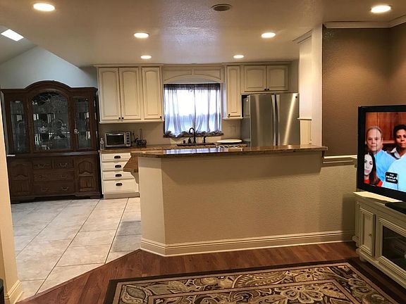 Lush Green Landscape starts you off on the right foot. Welcome into a nice open floor plan where the kitchen opens nicely onto the family room. This custom Granite countertop Kitchen and very nice upgraded cabinets will thrill the chef in the family. Nice hardwood floors that feel open and clean all over the downstairs. Master is nice and big. Backyard is very special, oversized and private! Huge covered patio, complete with fans! Beautiful Shade Tree off to one side and Hot Tub that works and stays. Get ready for a nice entertainment home where all can gather and enjoy! Third car bay has been made into 3 separate rooms, with plenty of storage!