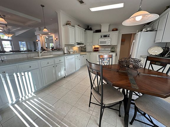 Spectacular Water View Home in an ACTIVE 55+ community! Enjoy breathtaking water views from nearly every room in this stunning 3-bedroom beauty. The spacious open floor plan features a large kitchen with ample cabinets and counter space, perfect for entertaining. The luxurious primary suite boasts double walk-in closets, a dream ensuite, and an adjoining den with French doors. Tray ceilings add elegance throughout. Two secondary bedrooms are smartly placed on the opposite side of the home for privacy. Relax on the lovely, paved patio deck overlooking the water. Includes a laundry room and a 2-car garage. Just beautiful a must-see!