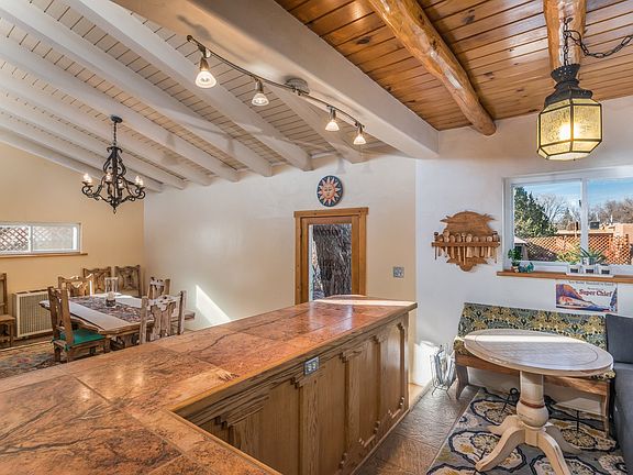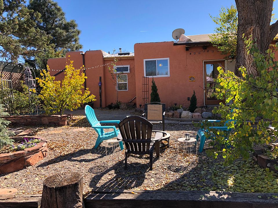 An opportunity to own a Stamm home in the very desirable neighborhood of Casa Alegre! This three bedroom, 3 bath main house also includes a guesthouse/studio. The home sits on a large lot with an amazing back yard, recently updated with a gazebo and fruit trees! Storage sheds, fenced garden or dog run, and water features are incorporated into this magnificent back yard setting, perfect for outdoor entertaining! This home features much of the Santa Fe charm one would expect with vigas, kiva fireplace, a large heated sun room, vaulted dining room and brand new kitchen appliances. This home is ready for your holiday get-togethers! The passive solar from the sun room makes the home very efficient. The recently remodeled main bathroom has double sinks, jacuzzi tub, and oversized shower. The attached guest house or studio, with its separate entrance, gives one the option of additional income or alternatively can easily be adapted into additional living space for the main house. Don't miss seeing this centrally located home.