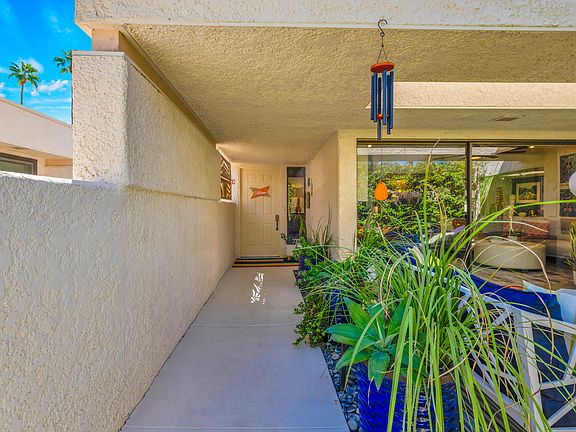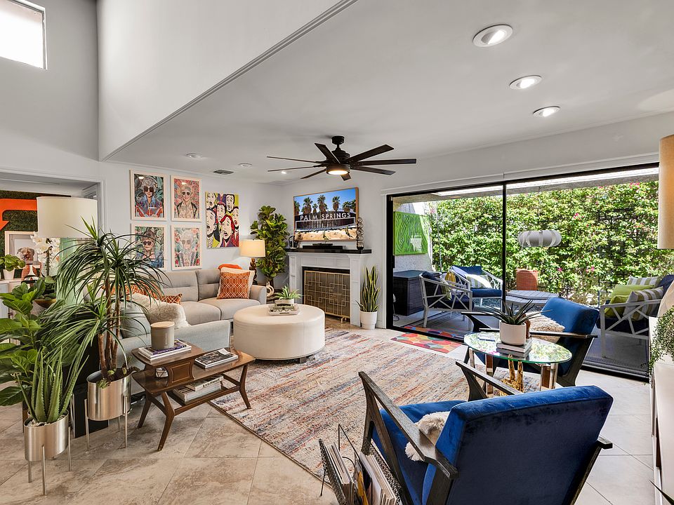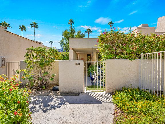 Step into desert living at its finest in this vibrant 2-bedroom, 2.5-bath condo nestled in the heart of South Palm Springs. Beyond the gated entry, lush greenery and colorful blooms lead to a private patio that sets the tone for this bright and airy retreat.