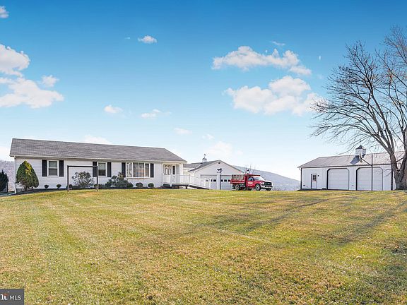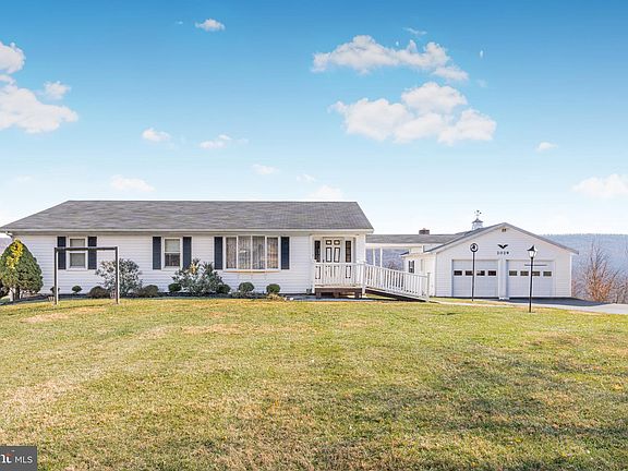 This home has been meticulously maintained and move-in ready. The original Owner built this Foremost Rancher Style Home in 1979. Situated on 4.15 open acres, a detached two-car garage, a two-car detached pole barn, a barn/stable, a brick-and-mortar run-in barn, and a storage barn. Large Front, Side, and Rear Yards. Open Yard with slightly sloping rear yard. Stunning valley and mountain views. Spacious Rancher offers a large foyer area with a coat closet, a Galley Kitchen with lots of cabinet space, white laminate countertops, and a white backsplash. Dining Area with Valley Views through large sliding glass doors leading to covered concrete porch. The Formal Living Room has a large Bay window and a Separate Family Room. Master bedroom on the rear side of the home with awesome valley views. Master Bathroom with walk-in shower. Two additional bedrooms and a large hall bathroom with double vanity and tub/shower. Off of the Master Bedroom Hallway is the laundry closet with a washer and dryer. It's a super convenient location. The lower level has connecting stairs off the rear family room. Huge unfinished basement with high ceilings. Workshop area with hanging lights. Bilco doors with stairs up lead to the rear yard. Water treatment systems include filters, UV light, and water softeners. Oil water-based board heating, central air conditioning, and ceiling fans. The front porch has been covered with a wood deck ramp, underneath are stairs and a concrete walkway. The seller will remove it if requested. A covered breezeway leads with a patio area leading to the sidewalk, garage, rear patio, and rear yard. Asphalt Driveway and lots of parking. Large detached pole barn with two-car garage area, electric. In the detached Garage, the seller previously had used a connection for a burning stove and then added a gas connection for a heat source in the pole barn. Horses, chickens, and goats are welcome. The new roof and new windows are on the upper level, and the oil furnace has just been serviced. Private Well and Septic. NO HOA, NO CITY TAXES. This home has been recently painted and is super clean. The exterior buildings are in great condition as well. Whole House Generac Generator. The roof was replaced in 2020, the Hot Water Heater in 2023, Leaf Filter System on the Gutters 2020.