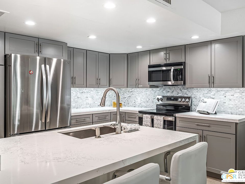 DESIGNED BY RENOWNED ARCHITECT HUGH M. KAPTUR, this exceptional South Palm Springs condo seamlessly blends mid-century modern with contemporary comfort. Expansive sliders showcase BREATHTAKING SAN JACINTO MOUNTAIN VIEWS, while sleek lines and sophisticated decor create a warm, inviting atmosphere. Inside, TWO PRIMARY ENSUITES offer space and privacy one featuring a fireplace, spectacular mountain views, and a private balcony. Centered around a fireplace, the living rooms opens effortlessly to a LARGE PATIO OVERLOOKING THE POOL AND LUSH LANDSCAPE, perfect for relaxation or entertaining. An attached garage with ample storage, in-unit laundry, and a DOWNSTAIRS BATHROOM complete with a shower enhance convenience, making this home ideal for both vacation retreats and full-time living. Set within a gated community offering RESORT-STYLE AMENITIES including two POOLS, two SPAS, TENNIS COURTS, a CLUBHOUSE with a FITNESS ROOM, and citrus-lined greenbelts this home is just moments from the best dining, shopping, and outdoor recreation in Palm Springs. An incredible chance to own a slice of Palm Springs in a prime location!