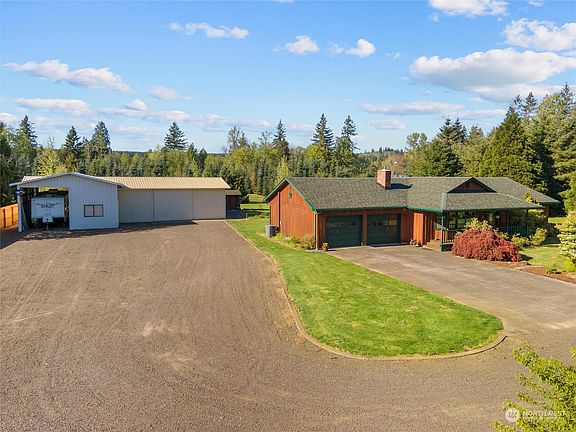 Beautiful cedar sided 3 bed, 2 bath rambler with an attached 2 car garage on 5.34 acres. Property has a private park like setting with mature landscaping, concrete curbed flower beds, orchard, fully fenced and crossed fenced, and a gated entry. Large shop with office space that has covered RV parking, 2 enclosed bays, and carport parking at the rear, plus a 2 car carport. Home features new heat pump, a brick fireplace with wood burning insert and a wood box with garage access, covered patio that overlooks the back yard, 400 amp service, EV charger, and wired for a generator.