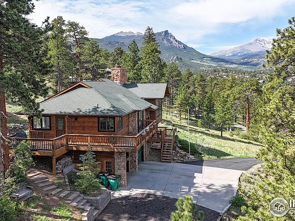 Wake up to jaw-dropping views of Longs Peak, Mount Meeker, Twin Sisters, and the peaceful valley below-visible not only from inside the home but also from your private hot tub on the expansive deck just off the primary suite. Directly abutting the property lies 64 acres of HOA-owned common space, creating the feeling of living on dozens of private acres without the upkeep. Set on over an acre in the prestigious Uplands at Fish Creek neighborhood, this custom 3-bedroom, 2.5-bath mountain retreat offers the perfect blend of rustic elegance and modern comfort. This home welcomes you with a dramatic great room featuring a floor-to-ceiling stone fireplace and oversized windows that frame panoramic mountain views. The open-concept design flows into a formal dining room and a bright, spacious eat-in kitchen-ideal for hosting guests or enjoying peaceful evenings at home. On the main level, you'll find a luxurious primary suite with dual walk-in closets, a spa-like bath updated in 2024, and direct access to the deck. A second bedroom on this floor offers flexibility for guests or a home office. The walk-out lower level provides additional living space with a cozy family room, second fireplace, a third bedroom, full bath, and access to a private patio-perfect for guests, family, or multigenerational living. Step outside and enjoy a wraparound deck that's perfect for morning coffee, evening sunsets, or wildlife watching. With national forest trails nearby and open space right out your back door, you'll experience the peace and adventure of mountain living-just minutes from downtown Estes Park and the entrance to Rocky Mountain National Park. Don't miss your chance to experience 2029 Uplands Cir-a rare combination of views, privacy, and comfort in one of Estes Park's most sought-after neighborhoods.