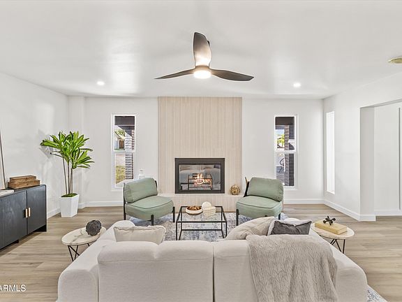 BE DELIGHTED by a hidden gem in Trails End Estates in Chandler! Stylishly, meticulously redesigned, this 4-bedroom, 3-bathroom HORSE-FRIENDLY ranch-style home sits on just under an acre with IRRIGATION, offering rare privacy and city convenience. The open-concept, split floor plan features floating cabinets, a chef's kitchen with quartz countertops and stainless steel appliances, recessed modern lighting, two modern fireplaces, and a wine bar with its own separate living space. The primary retreat includes an en suite with a glass step-in shower, and new wood-look flooring flows throughout. Outdoors, relish the open land, and envision the endless possibilities. NO HOA! Conveniently located near dining, shopping, coffee shops, and with easy freeway access. A STUNNING HOME WAITING FOR YOU! Agent is related to one of the sellers