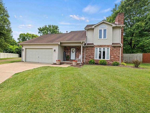 This home is truly one-of-a-kind. Conveniently located in town, you get all of the positives of living in city limits. The lot and home, however, do not feel like you are in city limits at all. Coined the “Little house on the cul-de-sac” you receive the best of both worlds in 2029 Wesley Dr. The backyard features a beautiful country setting with beans and cornfields behind it with a walking trail towards the back of the property and deer are often visitors. Being one of the larger lots in the neighborhood, the backyard offers endless opportunities. Currently, it is divided into two sections. One area is completely fenced in for the dogs, and the second section is fenced in for the safety of small children & pets with the pool. What other house in town has enough backyard space for large dog kennel, play set, raised garden beds, tree swing, 8FT inground pool, and concrete area for laying out by the pool? Once inside, you will notice an abundance of updates- the sellers left no stone unturned. The LVP on the main floor is brand new and the living room features a bricked gas fireplace that was serviced last year. The dining area is spacious enough for a large dining room table. Sellers opened up the previous L shaped kitchen to be completely open-concept with a large kitchen island. All of the crisp white shaker cabinets are brand new with soft-close drawers and all new quartz countertops. The sunken large sink, faucet, and matching Whirlpool stainless steel appliances are all brand new. All light fixtures have been replaced, all new ceiling fans and extra recessed lighting were added to the kitchen for the ultimate cooking experience for the new buyers. The home features all fresh paint throughout, all new 4.5” wide molding, new interior doors, and the windows were replaced 2-3 years ago. This home features a main floor primary bedroom suite (currently staged as a home gym due to the parents wanting to be upstairs with small children), three bedrooms upstairs, 2.5 baths, and a separate laundry room conveniently located off the 2-car attached garage. All of the bedrooms have double closets and a large area of floored attic storage that is convenient to get to, so storage is no issue. The HVAC was replaced last year and the driveway offers additional space for extra parking. There are apple trees, peach trees, raspberry and blackberry bushes. The sellers upgraded this home with care and were mindful of the next buyers every step of the way, don’t wait to view this one-of-a-kind home!