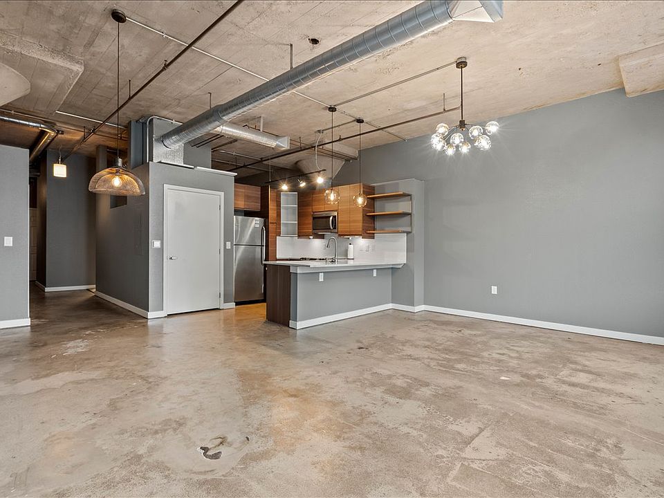 DOWNTOWN RENTAL ALERT. From the neighborhood venues just steps away to the industrial vibe inside, this 901-square-foot unit at Freight House Lofts delivers raw, edgy living in a prime location you'll love. Exposed brick, high ceilings, concrete floors, and large windows flood the space with light, complemented by contemporary finishes, which add a polished touch to its character.