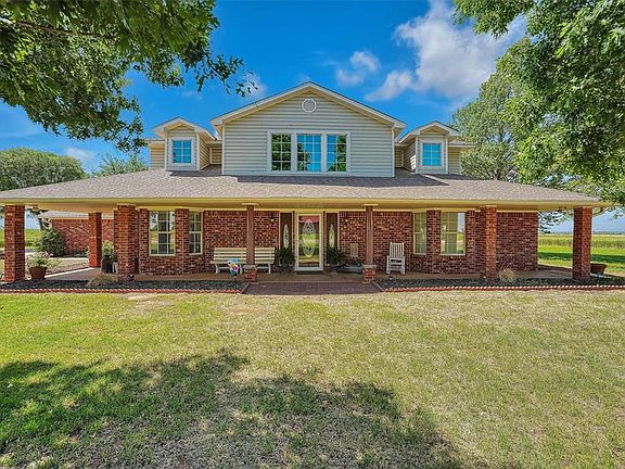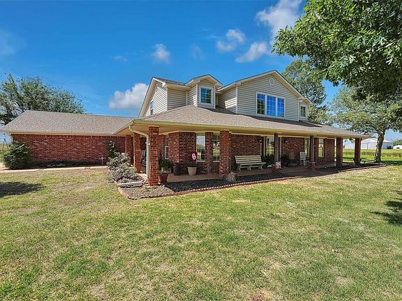A SHORT 10-MINUTE DRIVE SOUTH OF ALTUS TAKES YOU STRAIGHT TO A MORE PEACEFUL LIFESTYLE! This one owner 1995 custom built 1 ½ story modern style farmhouse sits on one acre and is offering 2963 square feet of living space plus a 600+ square foot double car garage. There are 2 bedrooms and 2 ½ baths downstairs and two bedrooms and one full bath upstairs. The super large kitchen comes with refrigerator, built in oven and range, dishwasher, breakfast bar, some pull out drawers on some of the bottom cabinets and a ton of cabinets and countertops! With a breakfast area and a formal dining area, big gatherings won’t ever be an issue. The open living area has a wood burning fireplace and access to the back patio that has been extended with red bricks from the old Elmer Country Store. The granite columns on the front porch are from the old Elmer Country Drug Store. The oversized laundry room comes with a ton of storage, utility sink, hanging rod, closet, built in cabinets, ½ bath and access to the basement/storm shelter that is appx. 12 x 16 in size. There are two AC units with one for downstairs and the other for the upstairs. Stained oak woodwork throughout including the front door! The walk-in attic access has two separate entrances. Another special feature is the central vacuum system for downstairs and upstairs. The home is all electric with super low electric bills and has a recently cleaned septic tank for sewer and has county water for the home and a well for the yard that has a pump house large enough for extra storage. A 24 x 36 pole barn is also included.